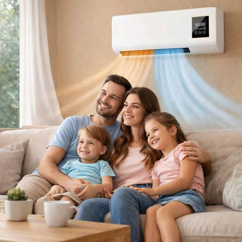 Disfruta de frescura en verano y calidez en invierno con este Aire Acondicionado de Pared Portable, diseñado para brindarte máximo confort, eficiencia y un toque moderno en cualquier espacio. Una solución práctica, potente y versátil para climatizar ambientes pequeños de forma rápida y sencilla.